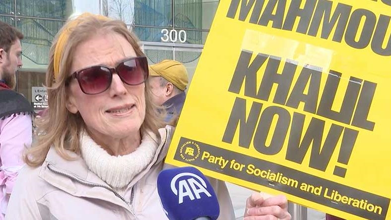 "It's obvious why he is here. He was supposedly a Hamas sympathizer just because he organized a non-violent protest, on behalf of the Palestinians, at Columbia University. It was non-violent. He was completely within his rights," Laurie Gagne, a resident of the nearby state of Maryland, told Anadolu.