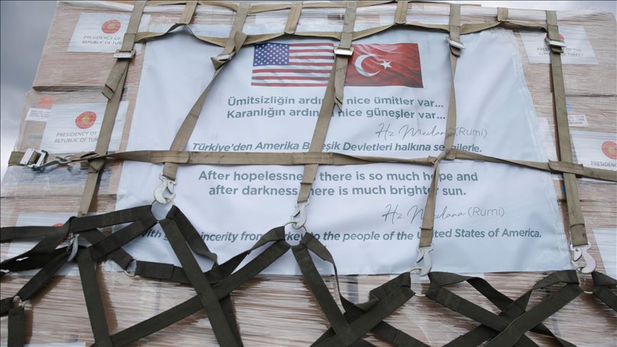 Prepared under the instructions of President Recep Tayyip Erdogan, the supplies carried a message for Americans: "After hopelessness, there is so much hope, and after darkness, there is the much brighter sun,” quoting the words of 13th century scholar Jalaluddin Rumi.