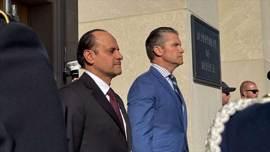 Pentagon chief Pete Hegseth welcomed Qatari Defense Minister Sheikh Saoud al-Thani to the US defense headquarters for talks on Friday.