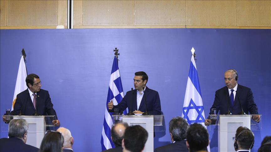 Israel and Cyprus have significant natural gas deposits and Greece wants to be energy hub, Tsipras told reporters, stressing the geopolitical position of the countries played a major role in the plan.