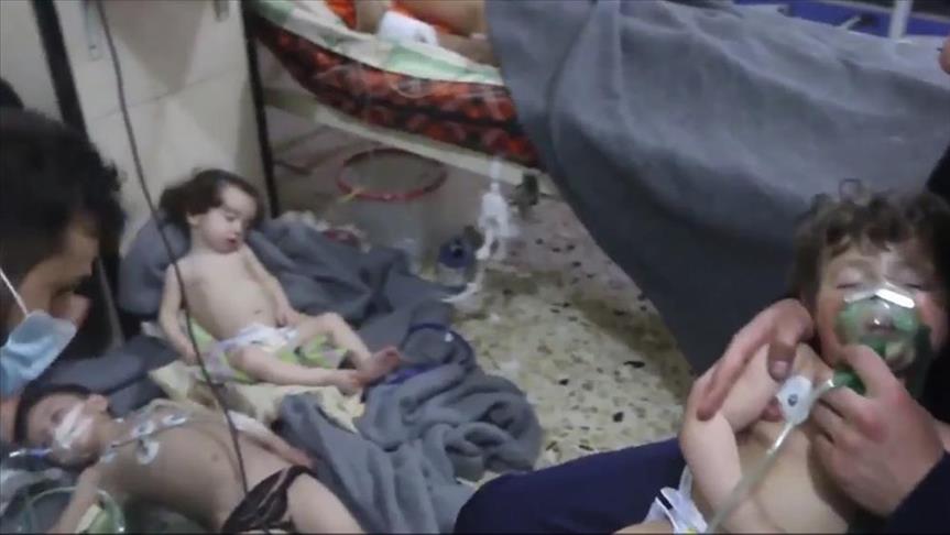 Assad regime forces struck targets in the Damascus suburb’s Douma district on Saturday midnight using a poisonous gas, which left at least 78 civilians dead, according to the White Helmets, a local civil defense agency.
