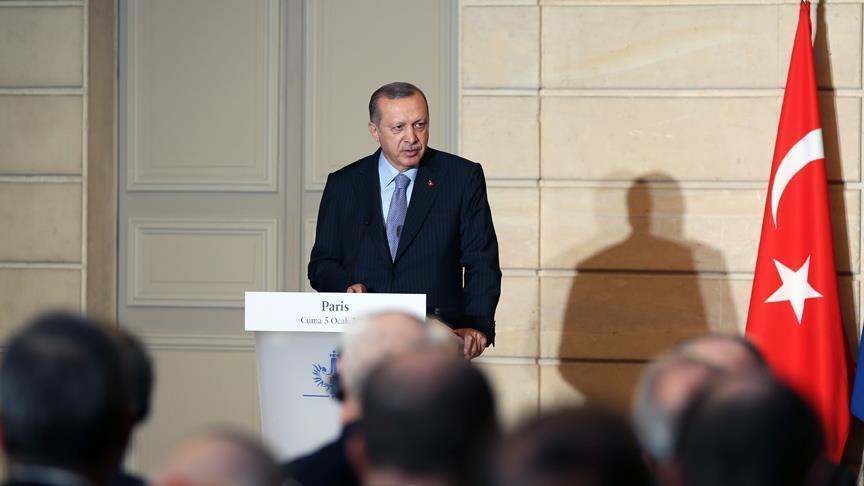 Erdogan was accompanied by Turkish Foreign Minister Mevlut Cavusoglu, Energy Minister Berat Albayrak, EU Minister Omer Celik and Defense Minister Nurettin Canikli during his one-day visit to France.