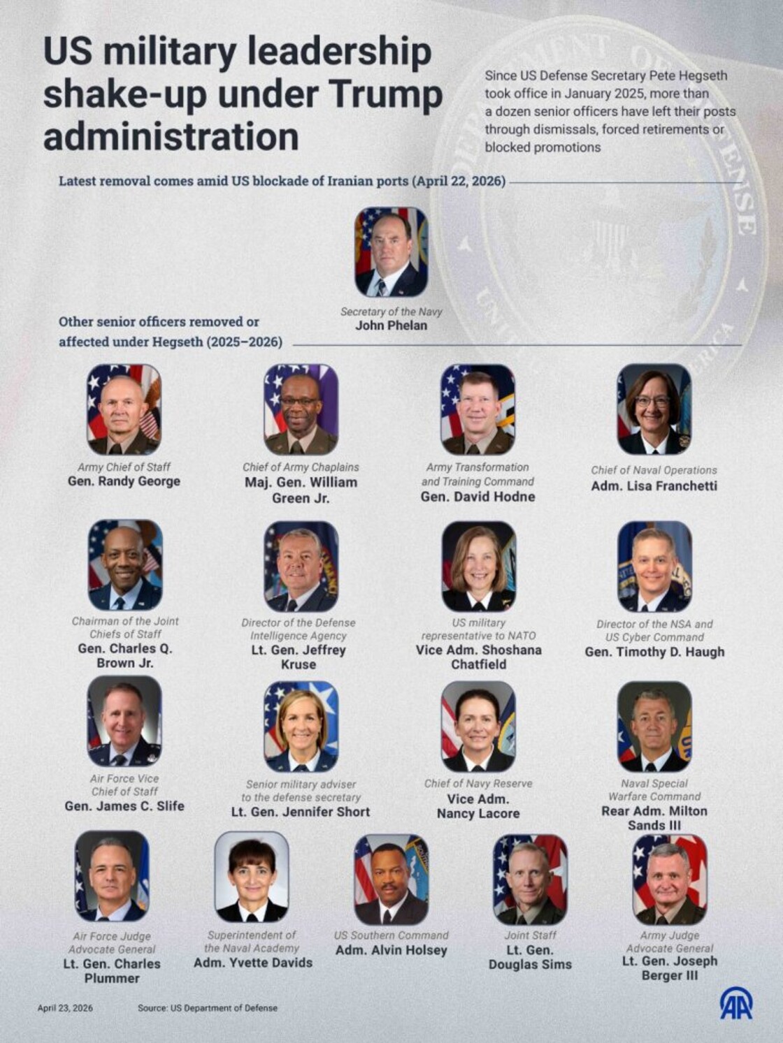 Here is a look at the massive leadership shake-up within the Pentagon