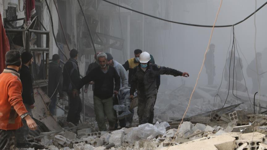 According to Anadolu Agency correspondents based in the area, regime airstrikes targeted residential parts of the district, including Duma, Ein Tarma and Saqba.