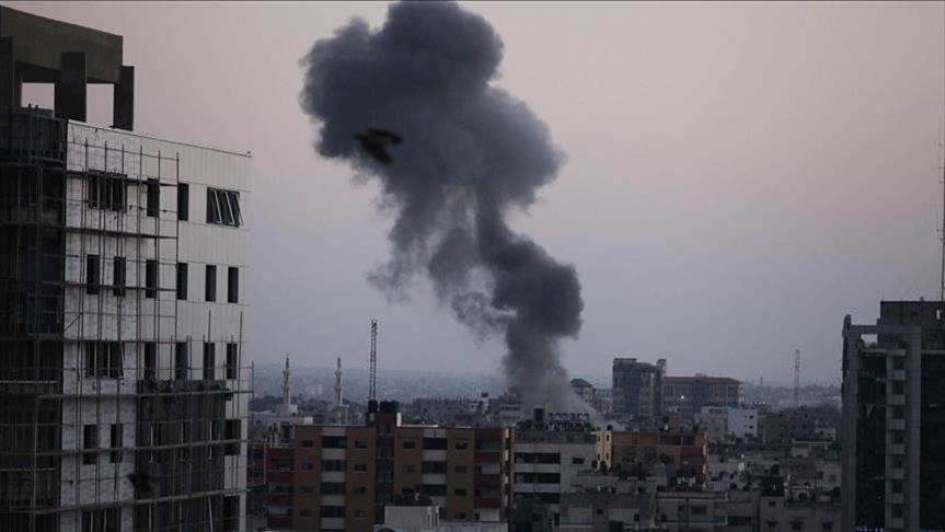 The army said in a statement the fighter jets and helicopters targeted installations belonging to Palestinian group Hamas in central Gaza.