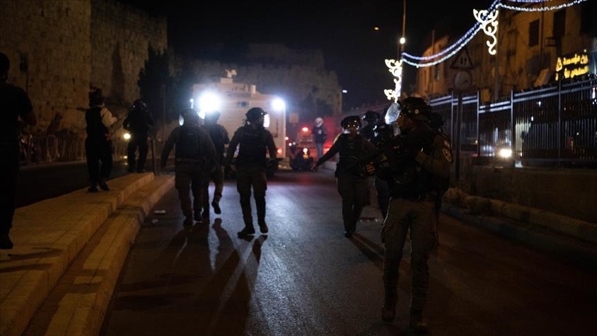 According to an Anadolu Agency photojournalist at the scene, Israeli police, who were waiting outside the two gates, fired plastic bullets and sound bombs at the congregation leaving the compound. Palestinian youth responded by throwing stones and bottles at the police.