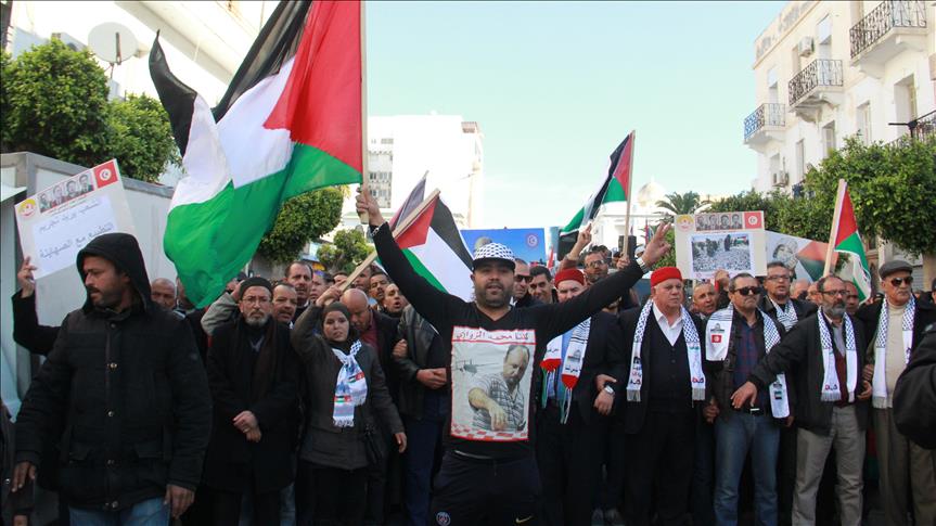 Speaking to Anadolu Agency, Kamal al-Gharbi, a political activist who attended the rally, extolled the slain aviation engineer, who, he said, had “sacrificed himself for the Palestinian cause and was killed by the Zionist enemy on Tunisian soil”.