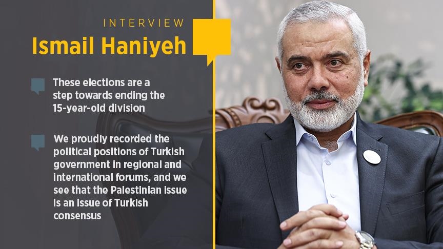 “We welcome the Turkish-Egyptian rapprochement, and we believe that more understandings between them and between Arab and Islamic countries will reflect positively on us in Palestine and on the Arab countries,” Ismail Haniyeh told Anadolu Agency in an exclusive interview.