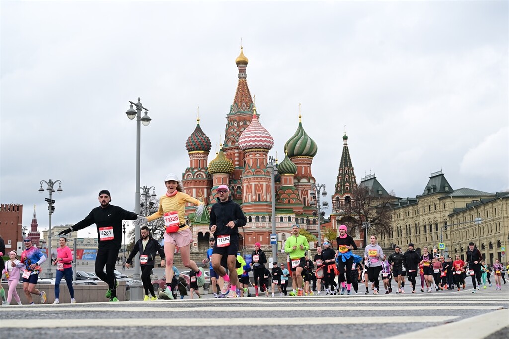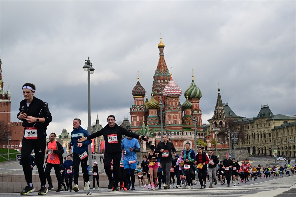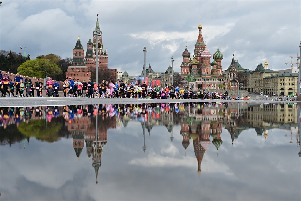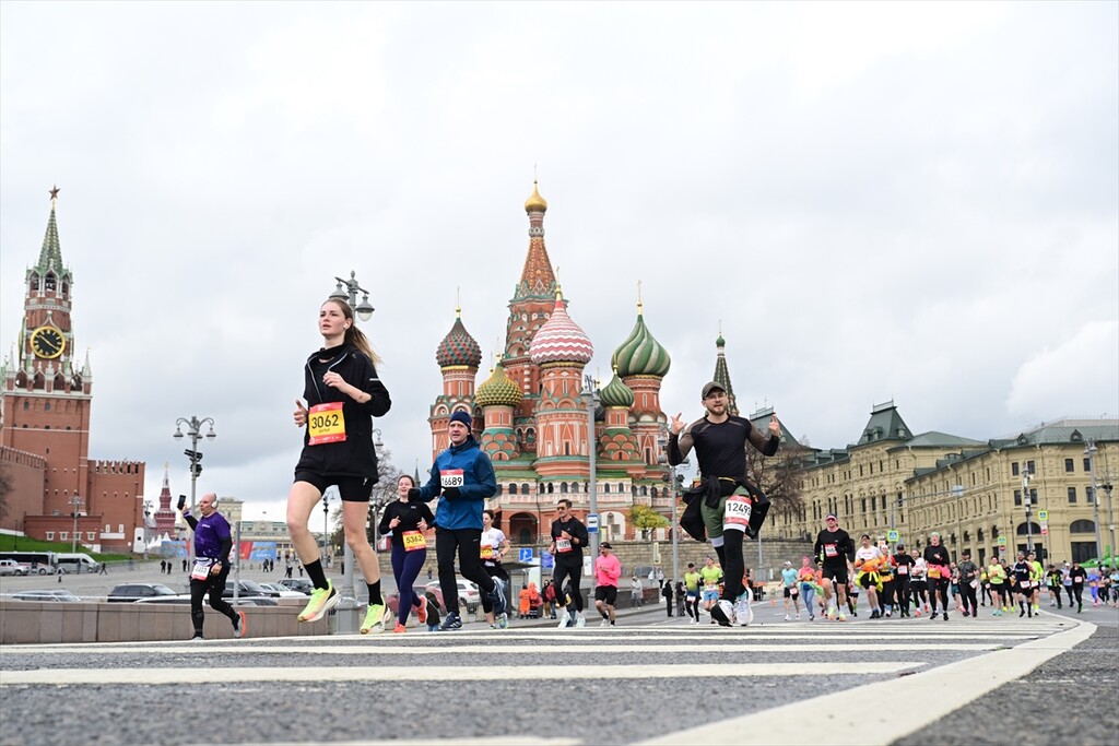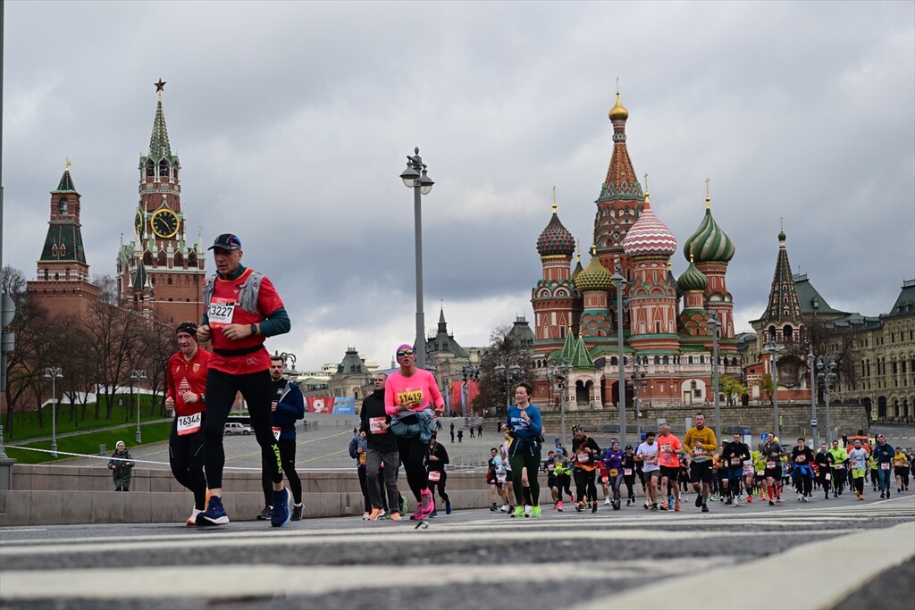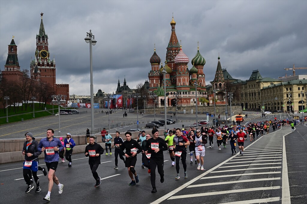 Runners take part in the 12th Moscow Half Marathon on April 26, 2026, in Moscow, Russia. The event, which is the largest half marathon in the country, saw approximately 30,000 participants running along the city's scenic landmarks.