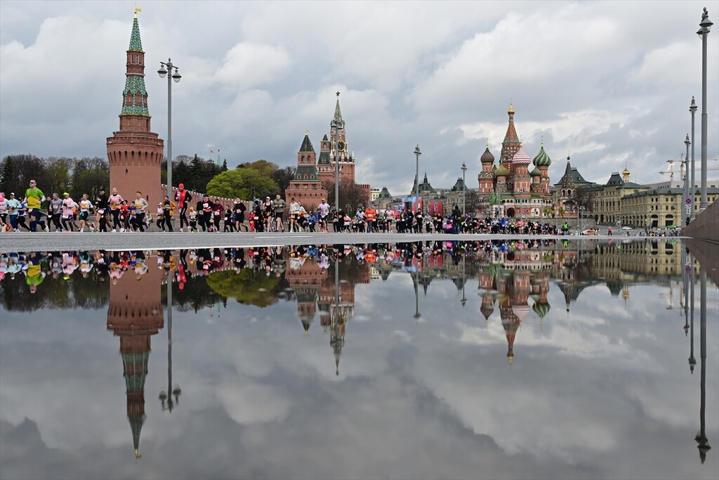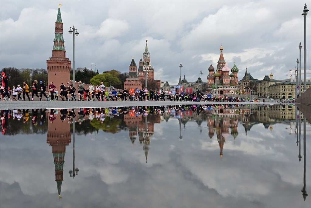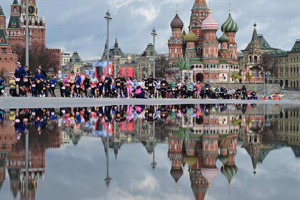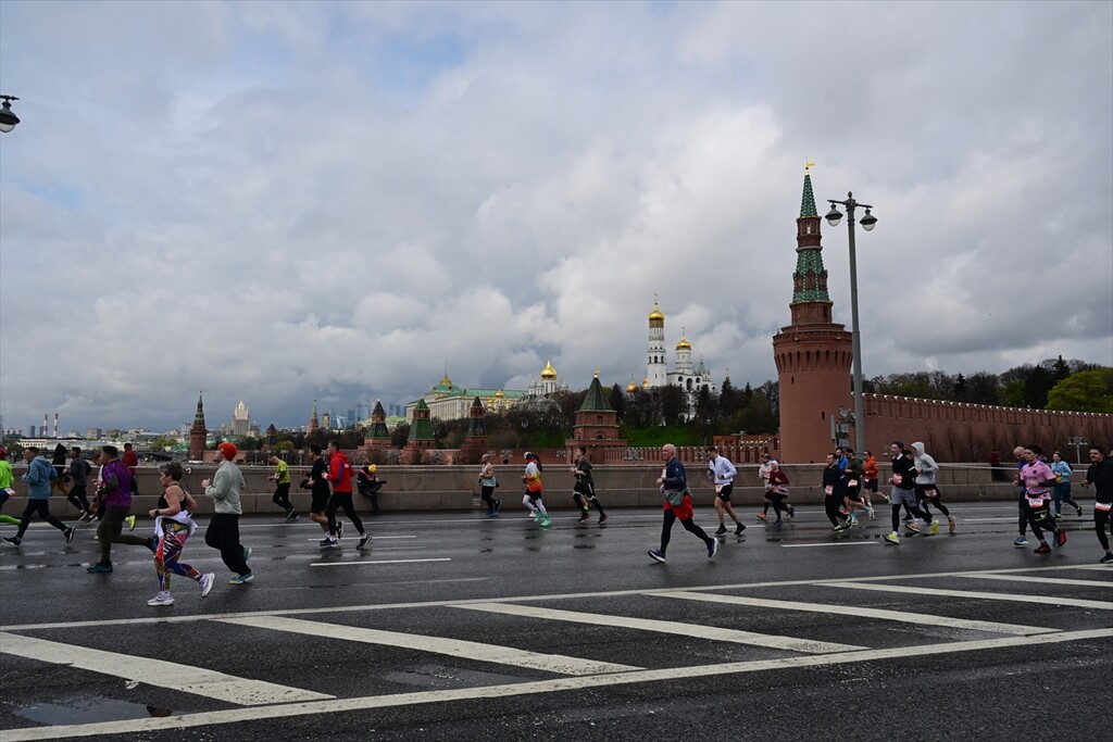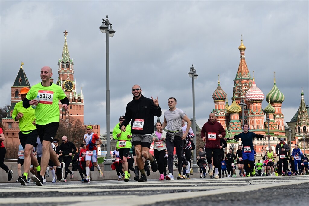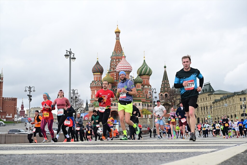 Runners take part in the 12th Moscow Half Marathon on April 26, 2026, in Moscow, Russia. The event, which is the largest half marathon in the country, saw approximately 30,000 participants running along the city's scenic landmarks.