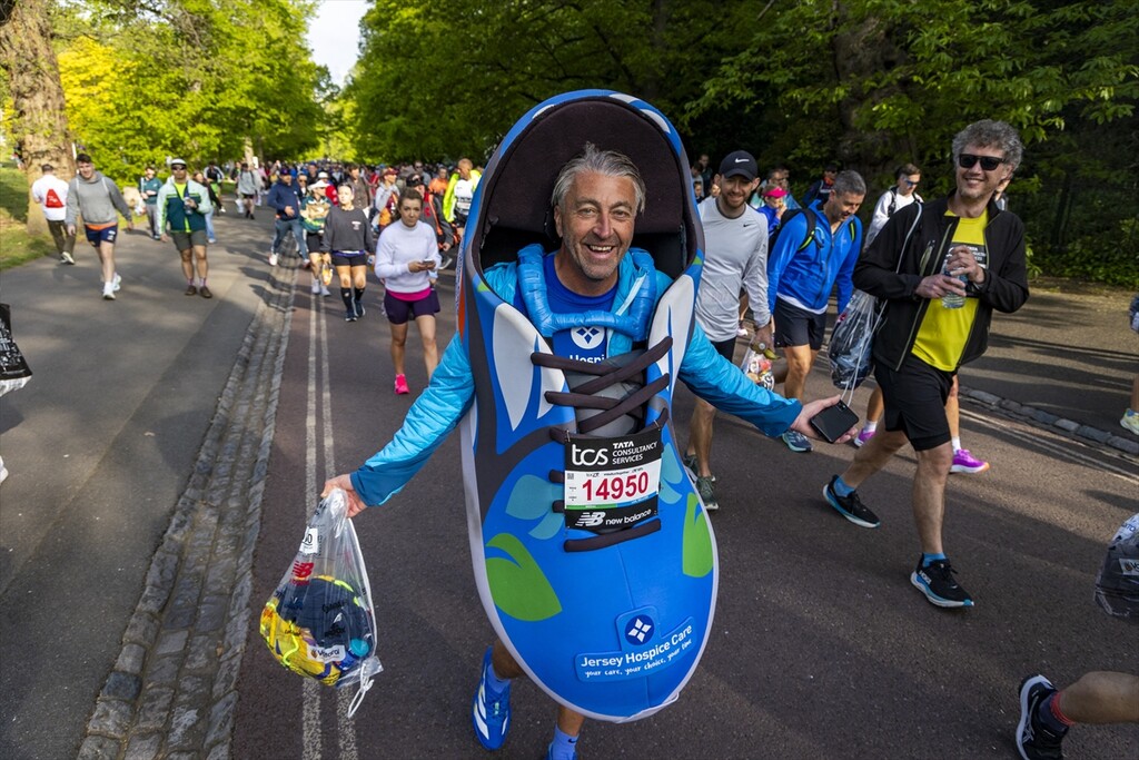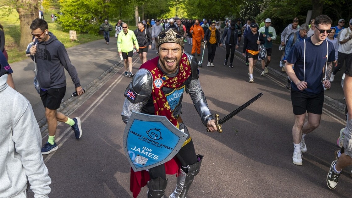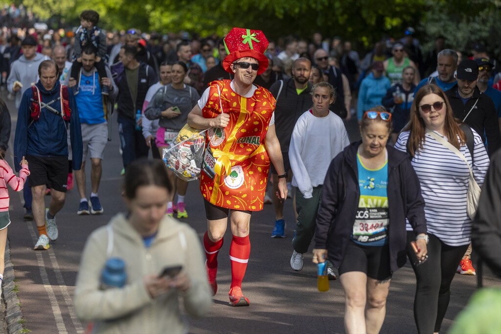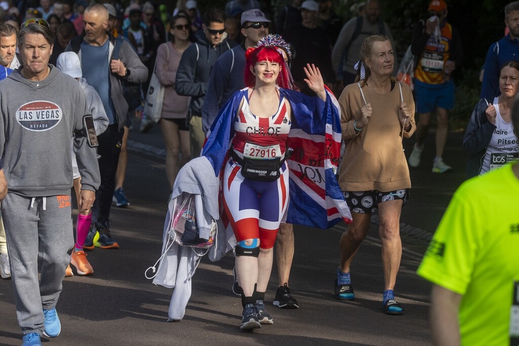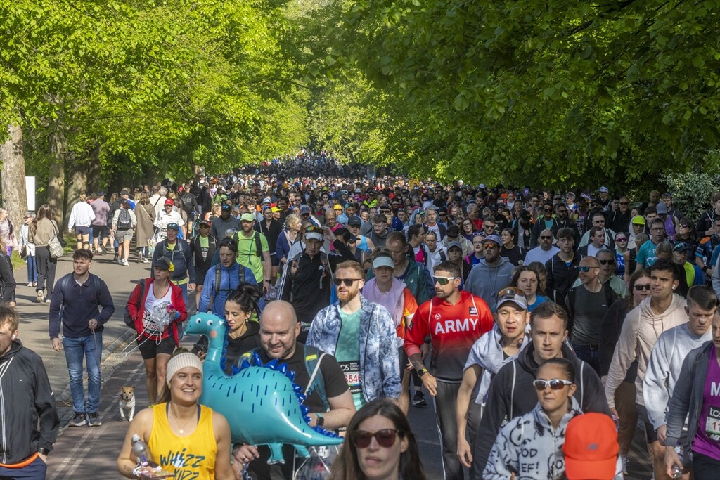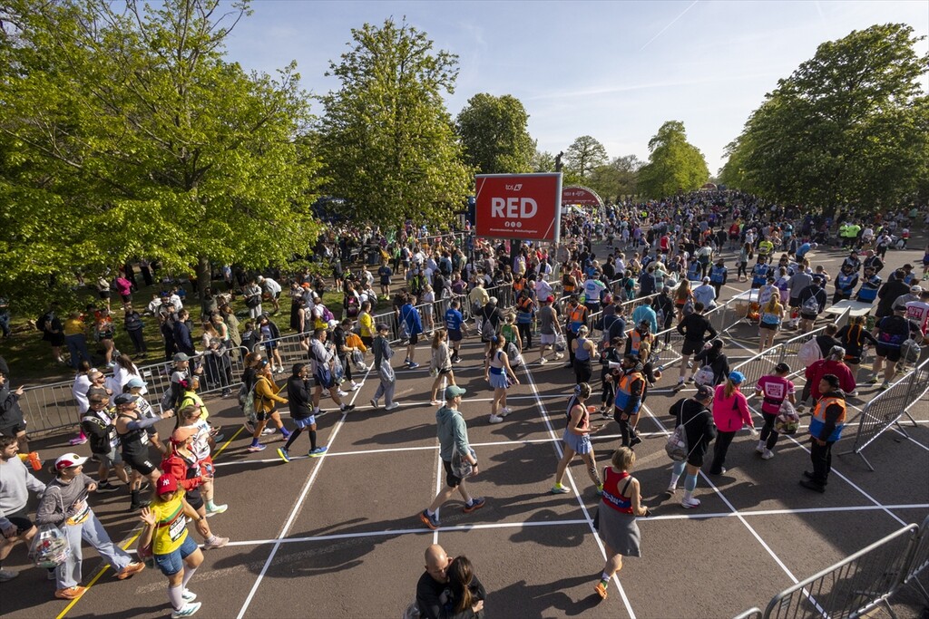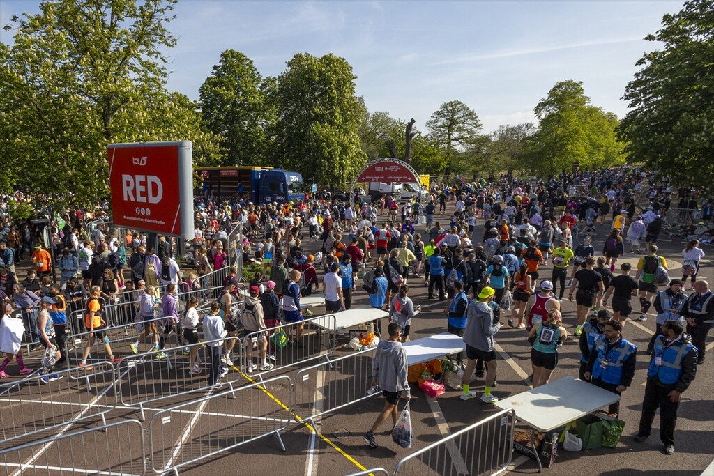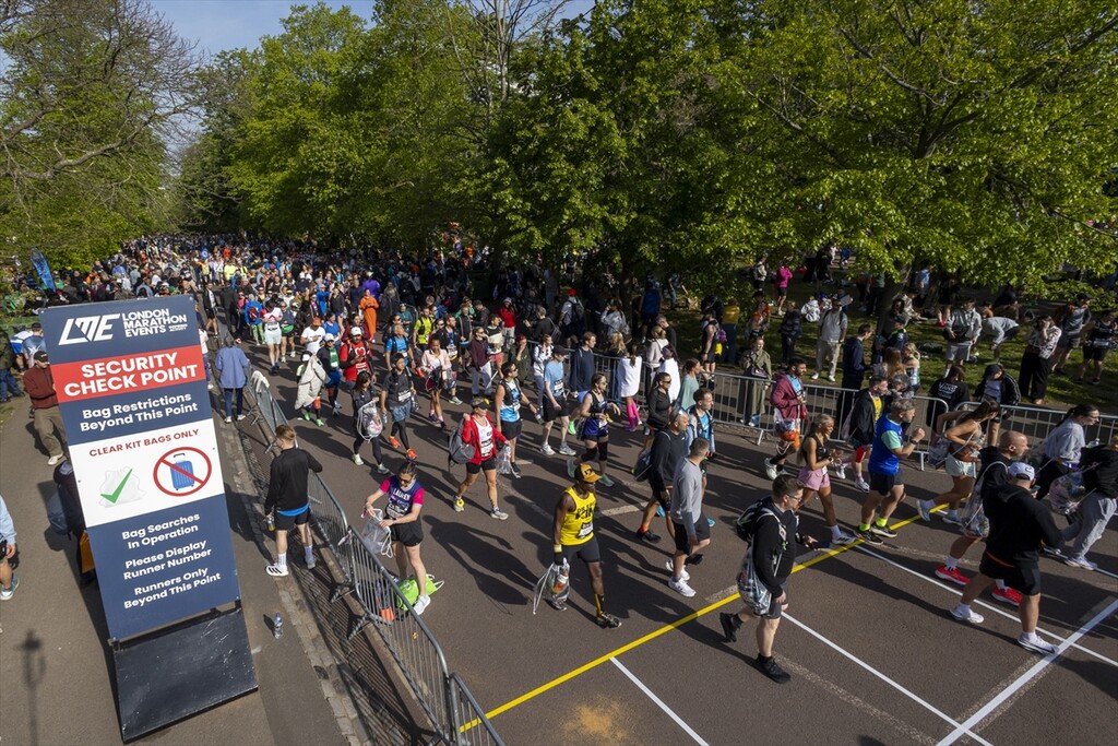 Runners arrive in Greenwich Park ahead of the start of the London Marathon in London, United Kingdom, on April 26, 2026. Around 50,000 people take part in the race.
