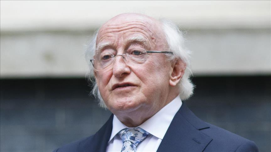 Ireland’s tricolor flag flew at half-mast as Higgins laid a wreath.