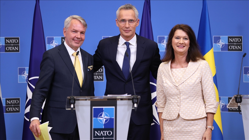 The NATO secretary general and the foreign ministers of Finland and Sweden held a press conference in Brussels following the signing of protocols, where they answered journalists’ questions about the trilateral memorandum with Türkiye, in which they pledged to address Ankara’s concerns about their stance on the PKK and FETO terror groups.