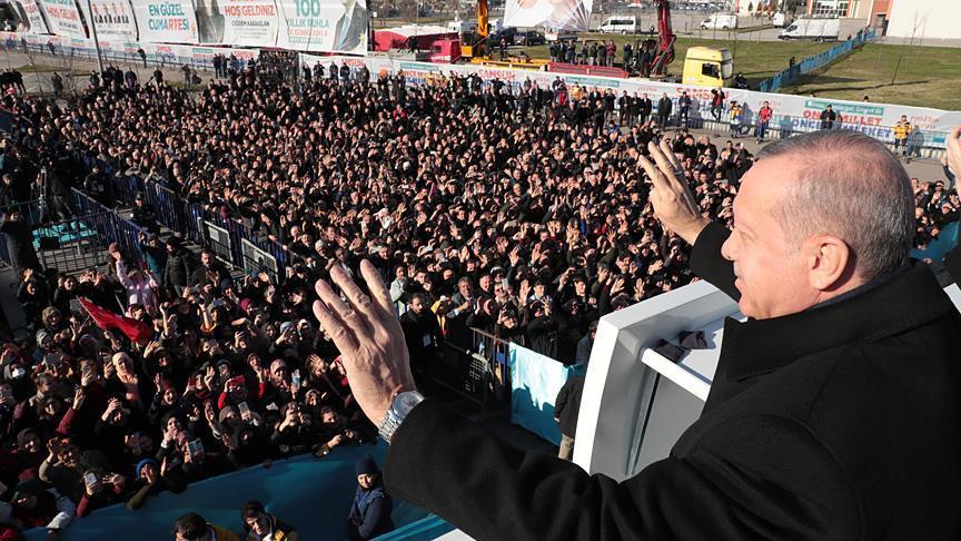 In a rally looking ahead to March 31 local elections, Recep Tayyip Erdogan rolled out the full slate of mayoral hopefuls for the Black Sea city of Samsun.