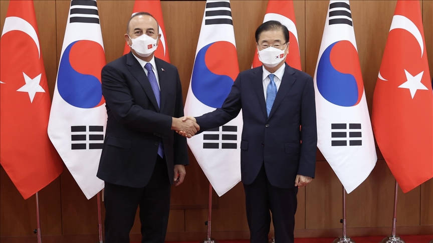In a series of Twitter posts, Mevlut Cavusoglu said he discussed with Chung Eui-yong steps to be taken in “areas such as investments, balancing trade, defense industry and facilitating travel.”