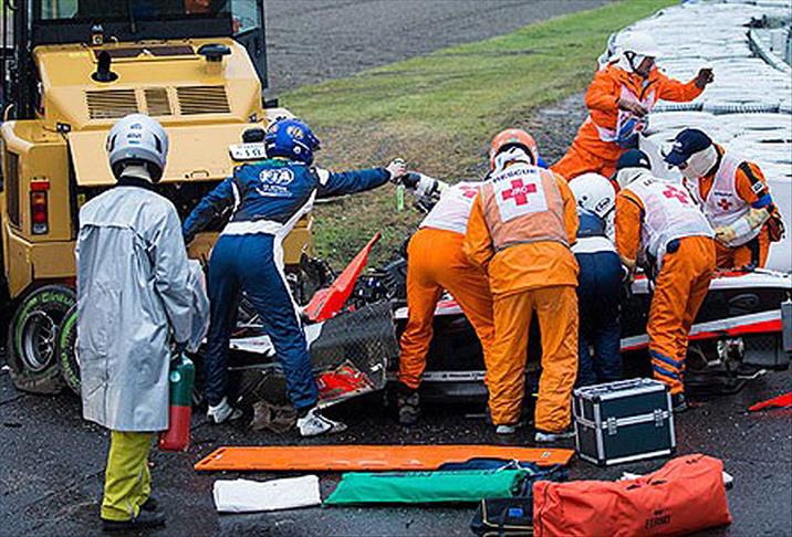 During the race, Bianchi lost control of his car which hurtled off the track and hit the back of a recovery vehicle being used to tow away Sauber F1 team driver Adrian Sutil's car, which had hit the barriers.