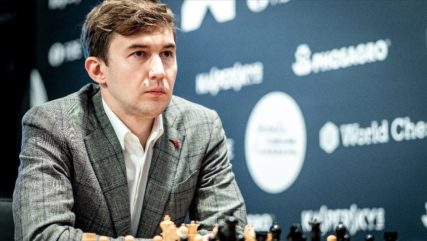 Russian chess grandmaster Sergey Karjakin received a six-month ban Monday from taking part in competitions for expressing his support for Russia's war on Ukraine.