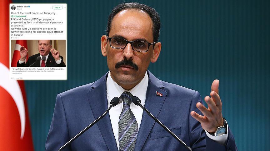 Turkey’s presidential aide Ibrahim Kalin on Saturday called an article by U.S.-based Newsweek magazine “one of the worst pieces on Turkey”.