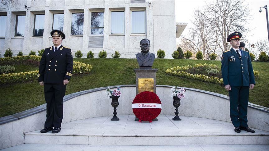 Russian Ambassador to Ankara Aleksey Yerhov, Yonet Can, an official from the Turkish Foreign Ministry, and Murat Baybatur, the head of friendship group between Turkish and Russian parliaments, were in attendance of the ceremony at the Russian Embassy.