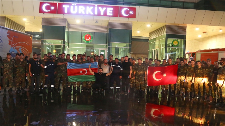 Azerbaijan dispatched another firefighting team early Monday to support Turkey as it battles forest fires ravaging the country since Wednesday.