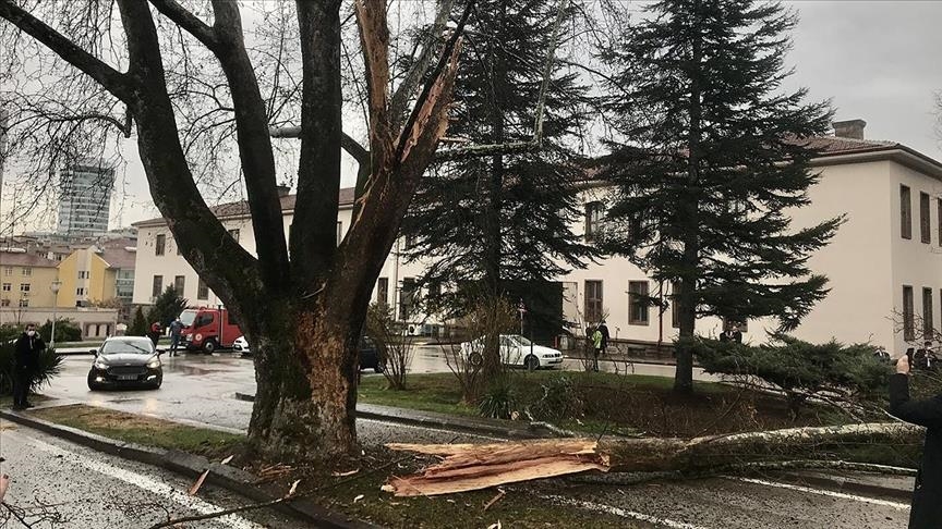 The broken piece of the tree fell on a vehicle that moved into the parliament's parking garage.