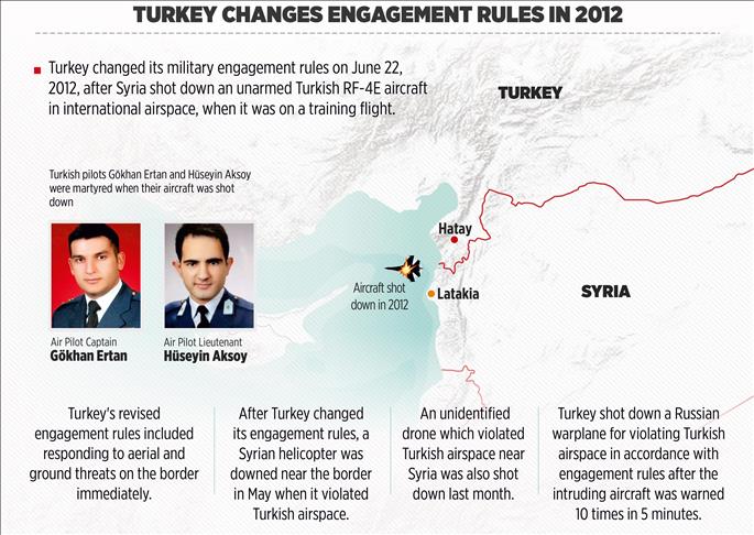 Turkey's rules of engagement were changed long before Tuesday’s downing of Russian aircraft when on June 22, 2012 Syria shot down an unarmed Turkish RF-4E aircraft, which was on a training flight to test eastern Mediterranean radars.