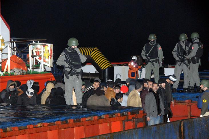 The cargo ship was carrying 337 illegal immigrants, mostly Syrian, including 85 children and 67 women, police officials said.