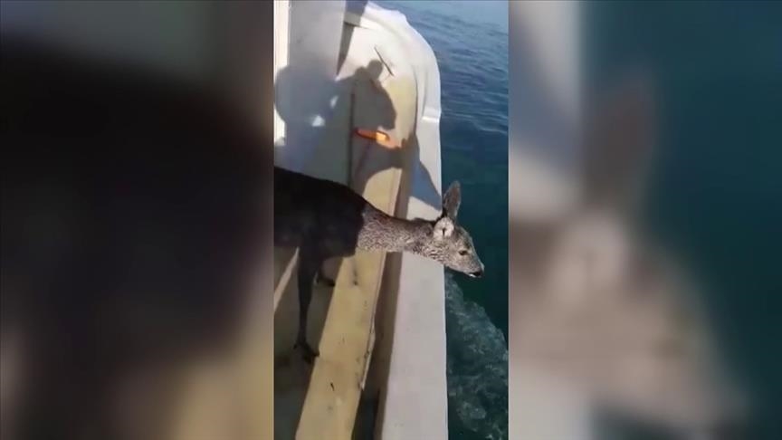 A roe deer that fell into the sea while escaping from dogs was rescued by fishermen in Turkey's Black Sea region.
