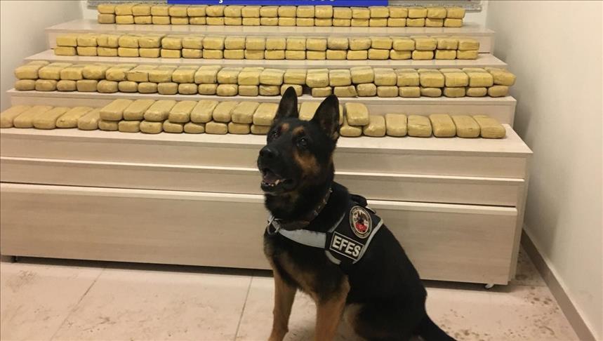 A sniffer dog found more than 102 kilograms (224 pounds) of heroine in 200 packages hidden inside sacks.