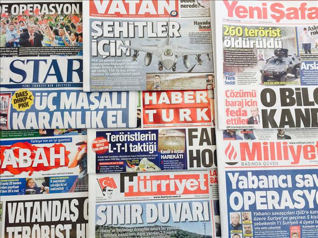 Turkish dailies on Thursday covered Prime Minister Ahmet Davutoglu's remarks on a wave of gun and bomb attacks which have rocked the country, including the deaths of police officers, army personnel and civilians.