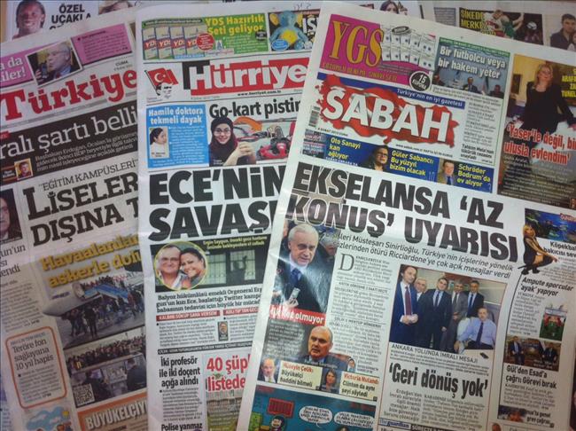 Most of the Turkish dailies covered the warning of Undersecretary of the Turkish Ministry of Foreign Affairs (MFA) Feridun Sinirlioglu to US Ambassador to Turkey Francis Ricciardone following his harsh criticism of Turkey's internal affairs. "Speak less warning to his excellency" headlined daily SABAH referring to Sinirlioglu's warning of "These type of statements cannot be accepted, do not repeat it again" in their two-hour-long meeting at the Foreign Ministry.