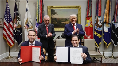 Asked by reporters about his remarks that Trump is “making efforts for peace” and how they can work together in the future, Erdogan said: "I say this because I believe it. I believe that together, hand in hand, we will overcome these challenges in the region."