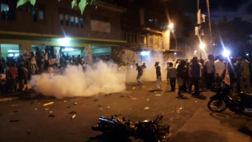 The opposition Maldivian Democratic Party issued a statement claiming that the protests had been peaceful until the police intervention.