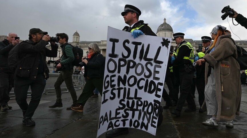 'Police knowingly unlawfully arresting peaceful protestors for holding placards which say: 'I oppose genocide - I support Palestine Action,' says organizers