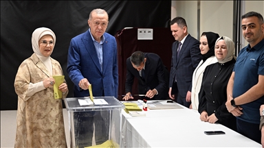 دور دوم انتخابات ریاست جمهوری ترکیه؛ اردوغان و همسرش رای خود را به صندوق انداختند