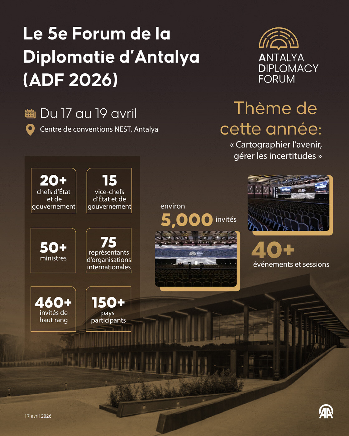 Le 5e Forum de la diplomatie d’Antalya (ADF 2026) se tient du 17 au 19 avril au Centre de conventions NEST, autour du thème « Cartographier l’avenir, gérer les incertitudes »