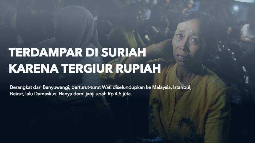 Perjalanan Wati – ini bukan nama sebenarnya, dia menghendaki namanya disamarkan – hingga duduk di kursi panjang Markas Besar Kepolisian Republik Indonesia (Mabes Polri) bersama beberapa wanita bernasib serupa juga tak pendek. Mereka baru saja dipulangkan dari Damaskus, Suriah, dan kepadanya disematkan status baru: korban perdagangan manusia. Korban Tindak Pidana Perdagangan Orang (TPPO), bila meminjam istilah resmi dari kepolisian.
