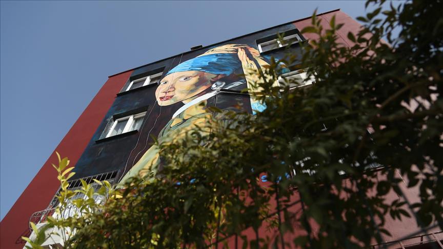 Pelukis Nazife Bilgin Hazar menggambarkan karya-karya pelukis terkenal dunia seperti Vincent Van Gogh, Osman Hamdi Bey, Pablo Picasso, Neset Gunal dan Salvador Dali ke dinding bangunan-bangunan apartemen di Provinsi Mersin, Turki.