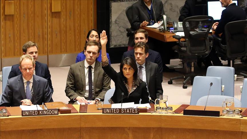 Sebelum menjatuhkan veto, utusan AS untuk PBB berkata AS memiliki “semua hak” untuk menempatkan kedutaan besar di lokasi yang diinginkannya. Nikki Haley juga mengecam usaha PBB untuk menciptakan perdamaian Israel-Palestina, dan berkata bahwa badan internasional ini “menghindari penyebab perdamaian”.