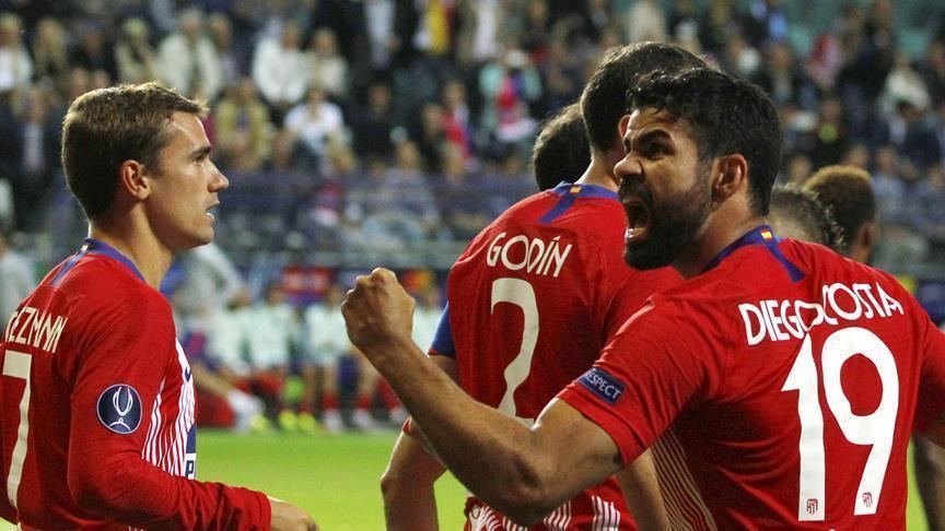 Atletico unggul 1-0 di menit pertama lewat gol Diego Costa. Gol Costa menjadi yang tercepat dalam sejarah Piala Super.
