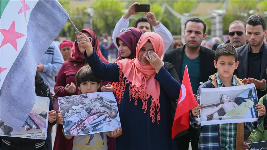 Kelompok LSM Suriah pada Senin meluncurkan kampanye untuk meningkatkan kesadaran tentang pembantaian massal dengan senjata kimia oleh rezim Bashar al-Assad di Al-Bab, Suriah Utara.