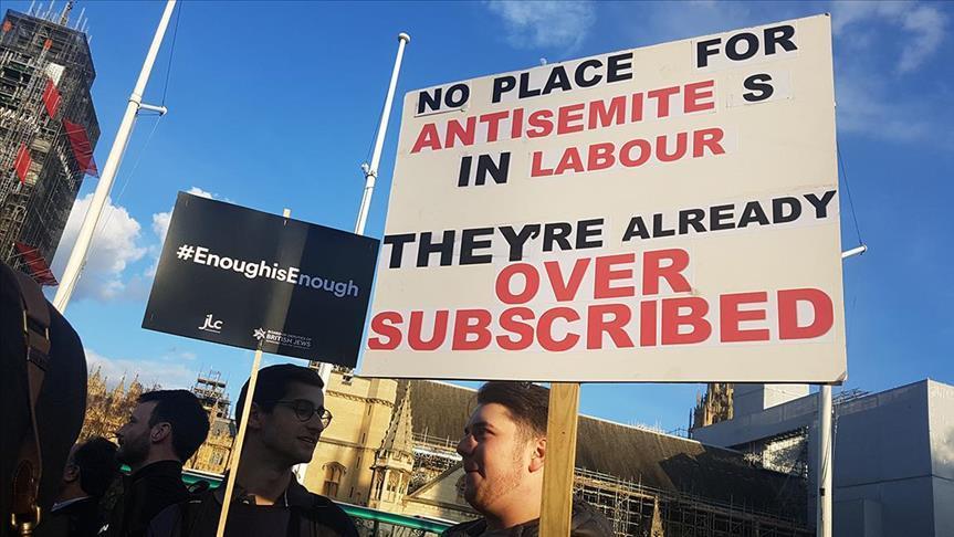 Unjuk rasa itu digelar oleh sejumlah organisasi Yahudi Inggris dan diadakan di Parliament Square. Para pengunjuk rasa menuntut agar Corbyn mengambil langkah terhadap dugaan sentimen anti-Yahudi dalam partainya.