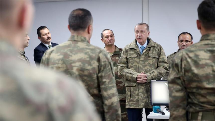 Dalam kunjungan itu, Erdogan menerima laporan dari komandan dan perwira di pusat komando yang bertanggung jawab untuk urusan administrasi Operasi Ranting Zaitun tersebut.