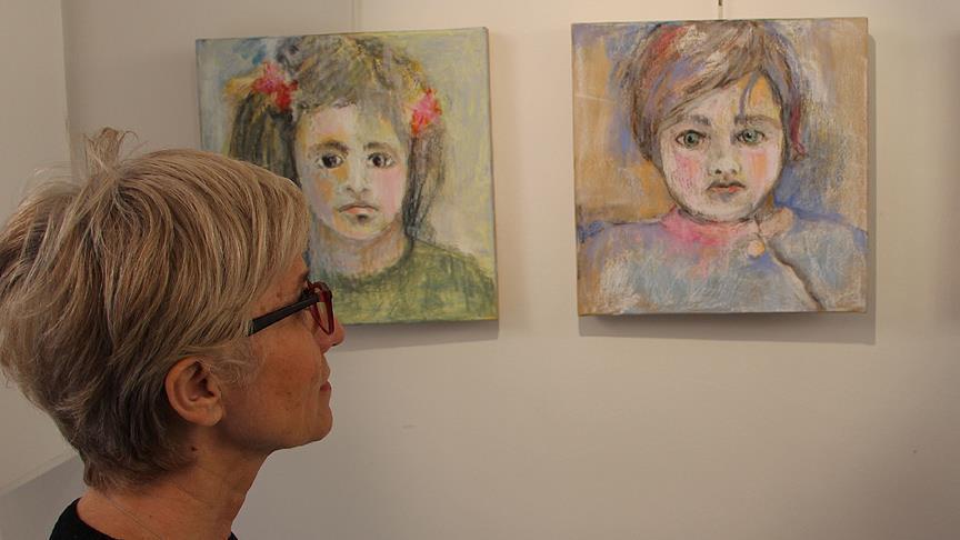 Serap Gümüşoğlu menerangkan karya-karyanya menggambarkan kisah anak-anak pengungsi Suriah yang tinggal di pemukiman Gaziantep, Turki.