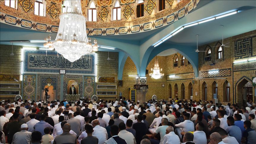 Li Kerkûka bajarê Iraqê welatî ji bo nimêja Eyda Qurbanê li mizgeftan kom bûn.