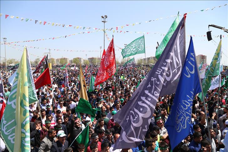 Li Platformê pankartên ku li ser him bi kurdî him jî tirkî "Dê û bavê me di rêya te de feda bin Ya Resûlallah" û "Me Şehidên xwe yên Aşiqê Pêxember ji bîr nekir û em ji bîrnakin" nivîsandîbûn hatin daliqandin. Li ser pankartan wêneyên Yasîn Boru û hevalên wî yên ku di bûyerên 6 û 7ê kewçêrê de hatin qetilkirin jî hebûn.