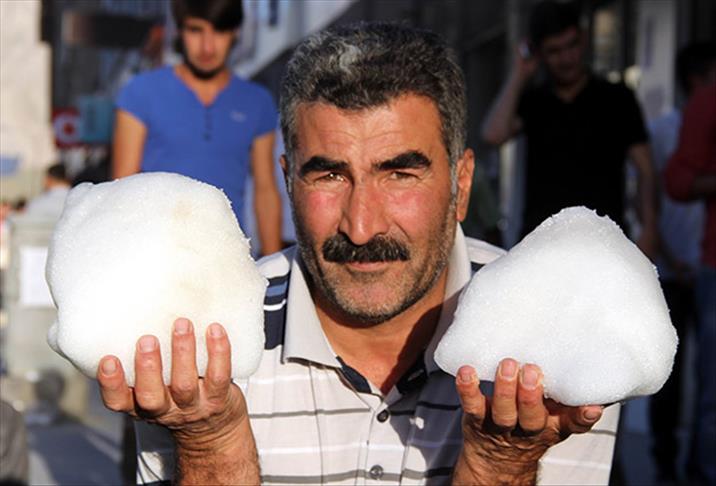 Welatî berfa ku ji zozanê Berçelanê tînin di nav poşêtan de bi 3 lîreyî difiroşin.