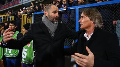 Lojtari i të “kuq e verdhëve” gëzimin për golin e parë të shënuar e ndau me pjesëtarët e policisë speciale të cilët ishin rreshtuar rreth fushës së blertë.