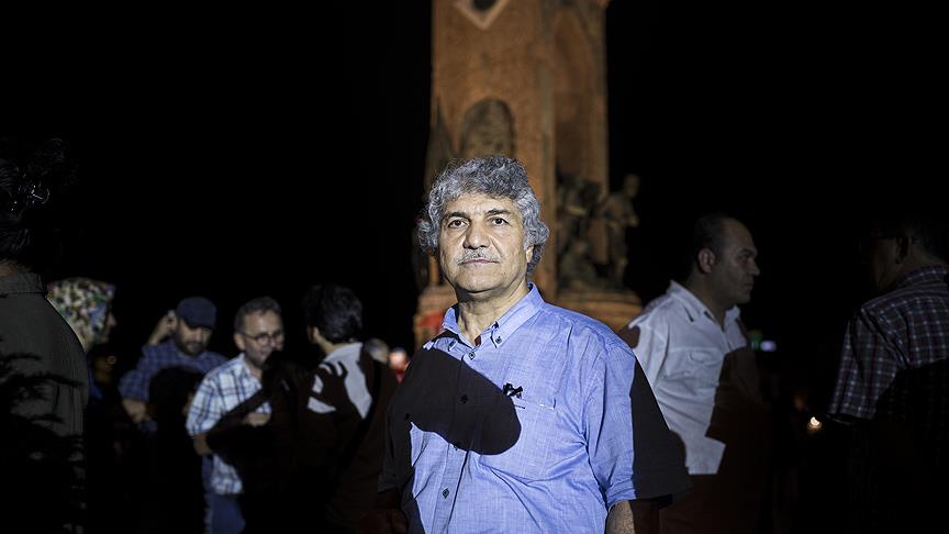 Darbe kalkışması nedeniyle toplumun birçok kesiminden isim meydanlarda nöbet tutuyor, Taksim Meydanı'nda nöbet tutan yönetmenler İsmail Güneş ve Mesut Uçakan darbe girişimi hakkında, AA muhabirine konuştu.