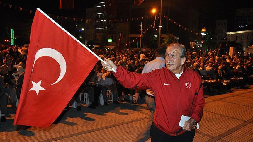 "Dünyanın en yaşlı gazisi" unvanını taşıdığı 1994'te 110 yaşındayken vefat eden Hüseyin Kaçmaz'ın oğlu Turgut Kaçmaz da Devrim Bulvarı'ndaki Atatürk Anıtı önünde tutulan demokrasi nöbetine katıldı.